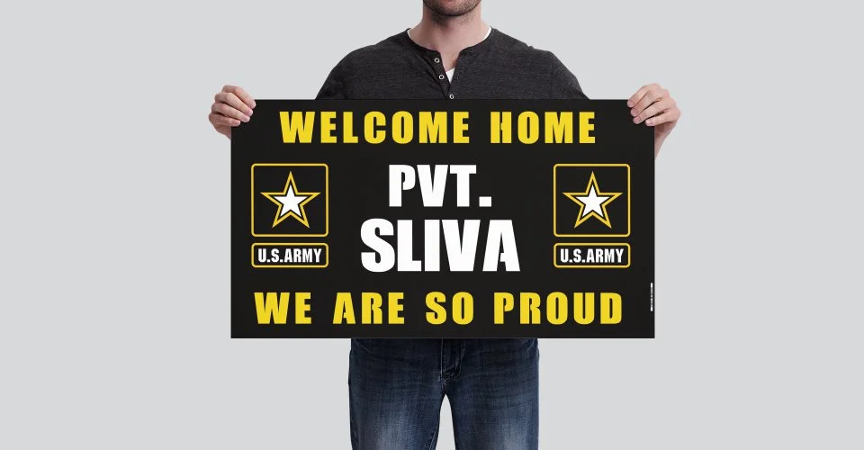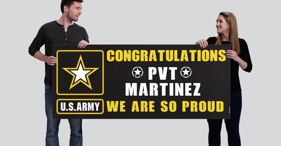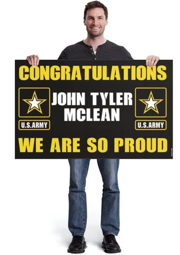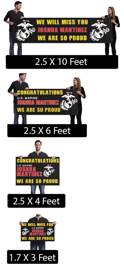Banners Categories: All Banner Birthday Graduation Military School Sports All Banner Birthday Graduation Military School Sports College Graduation Lawn Sign from $43.00 U.S. Marine - Welcome Home, Graduation, Bootcamp Vinyl Banner from $19.99 U.S. Army Vinyl Banner from $19.99 Graduation Banners with or without Photo from $73.99 High School Sports Banners - Any Sport and Color Combination $20.00 Custom Vinyl Banner from $29.99 R.E.D. REMEMBER EVERYONE DEPLOYED - Vinyl Banner from $19.99 Animal Crossing Inspired Custom Birthday Banner from $19.99 Clash of Clans Birthday Banner - Customized with Name from $19.99 Custom Banner 2x6 ft. $49.00